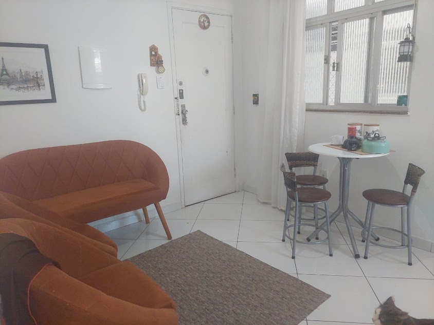Apartamento à venda em charmoso prédio com elevador, de frente para a praia do Embaré, um dos bairros mais desejados de Santos.